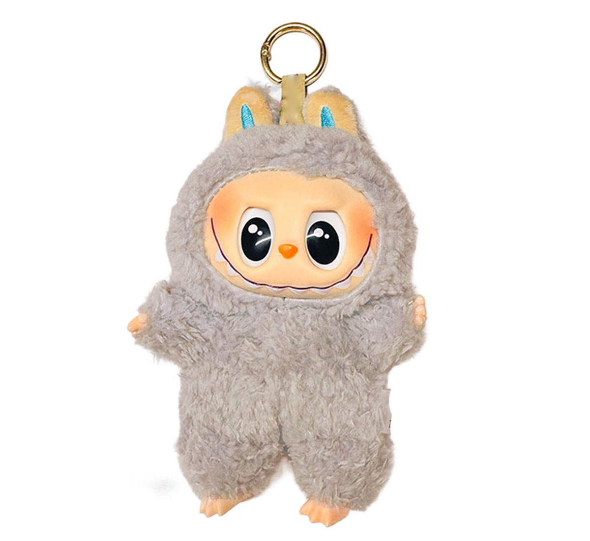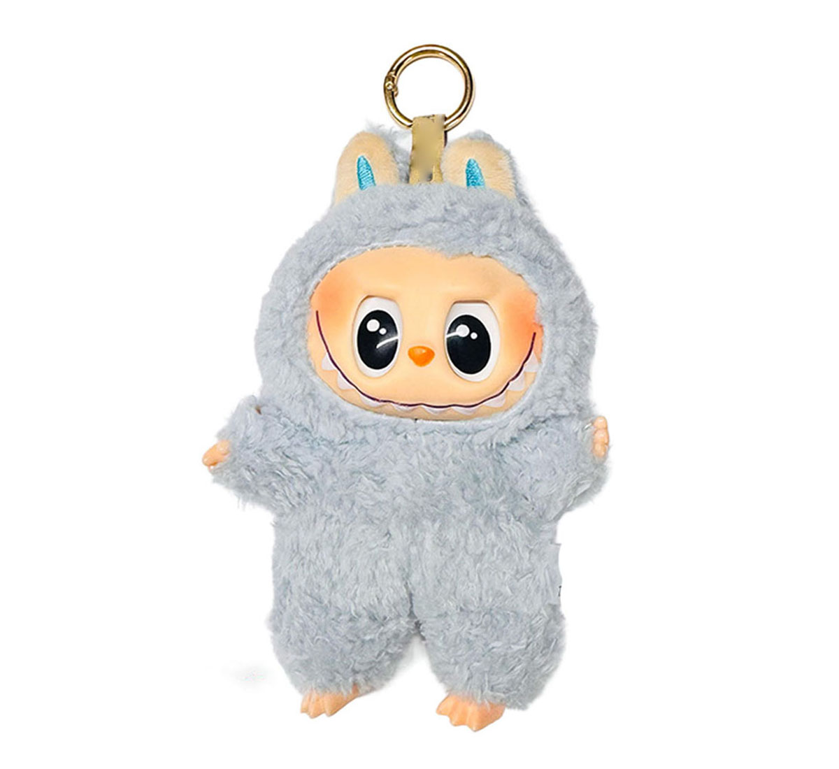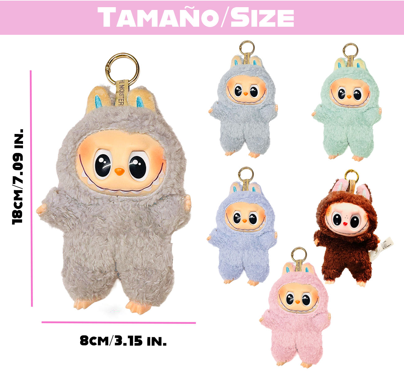 Diseño Kawaii con Detalles Adorable: Están vestidos en suaves trajes de peluche con orejas, y cuentan con una cara de vinilo expresiva que les da un toque de ternura y diversión.