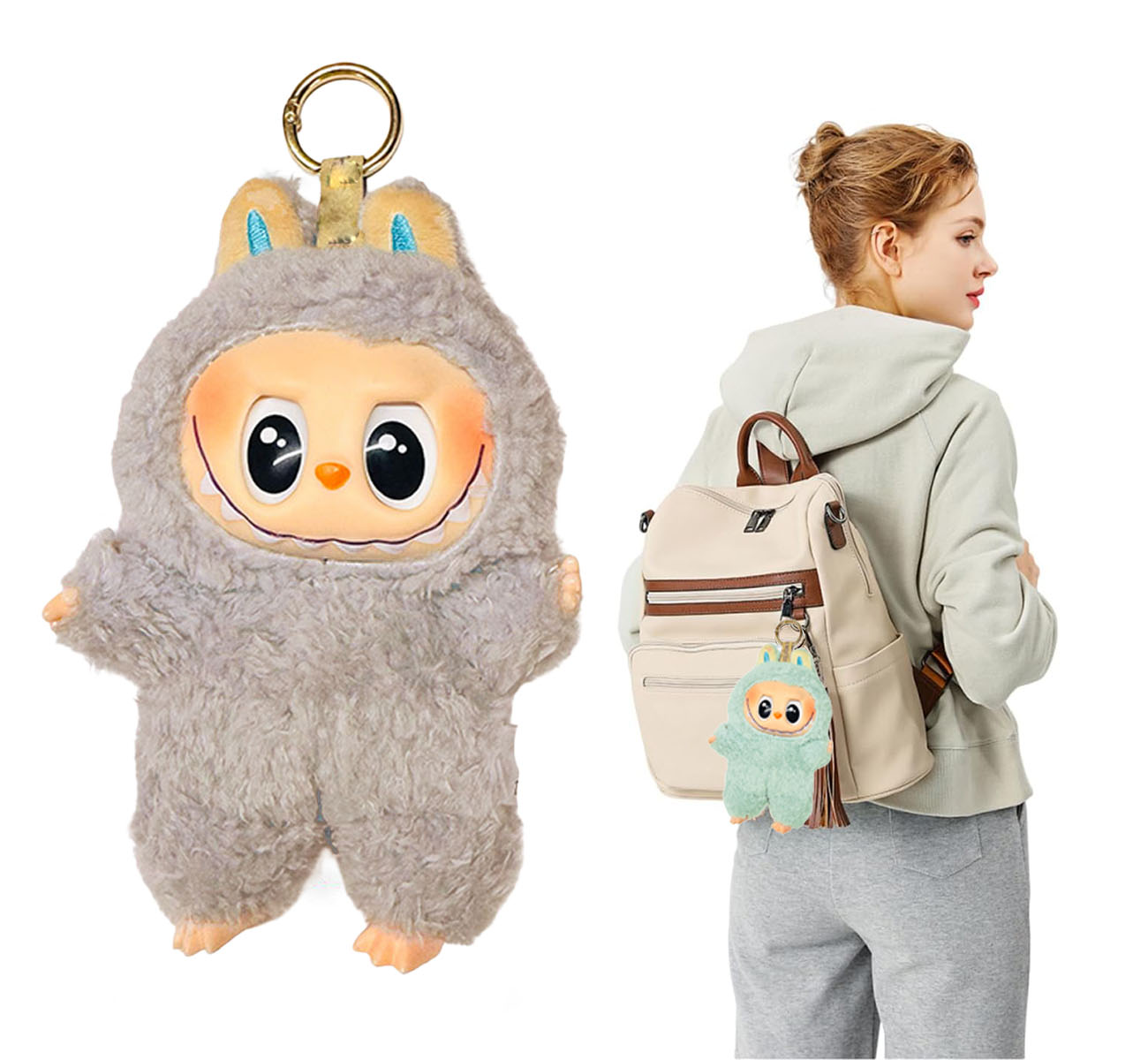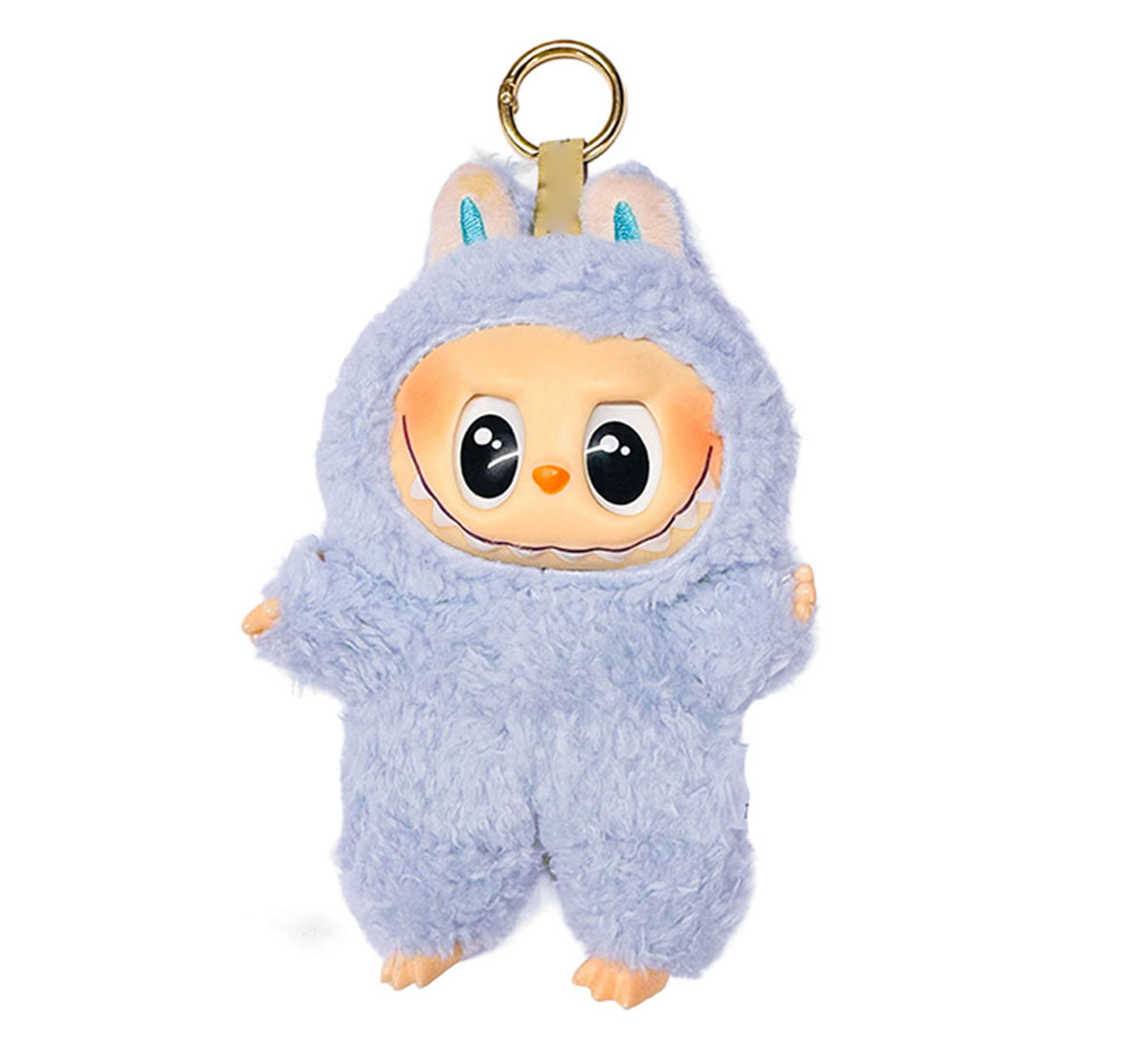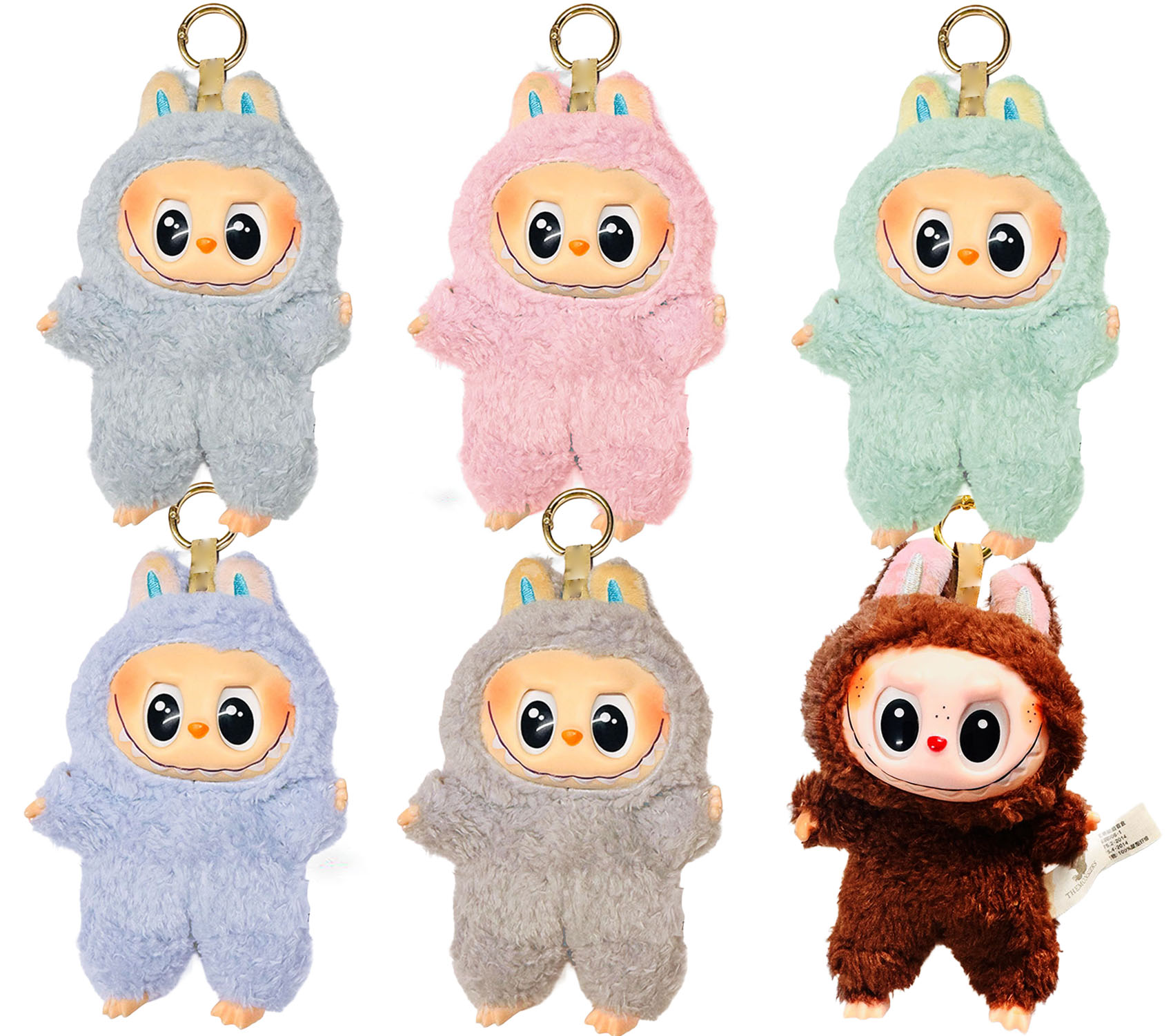 Diseño Kawaii con Detalles Adorable: Están vestidos en suaves trajes de peluche con orejas, y cuentan con una cara de vinilo expresiva que les da un toque de ternura y diversión.